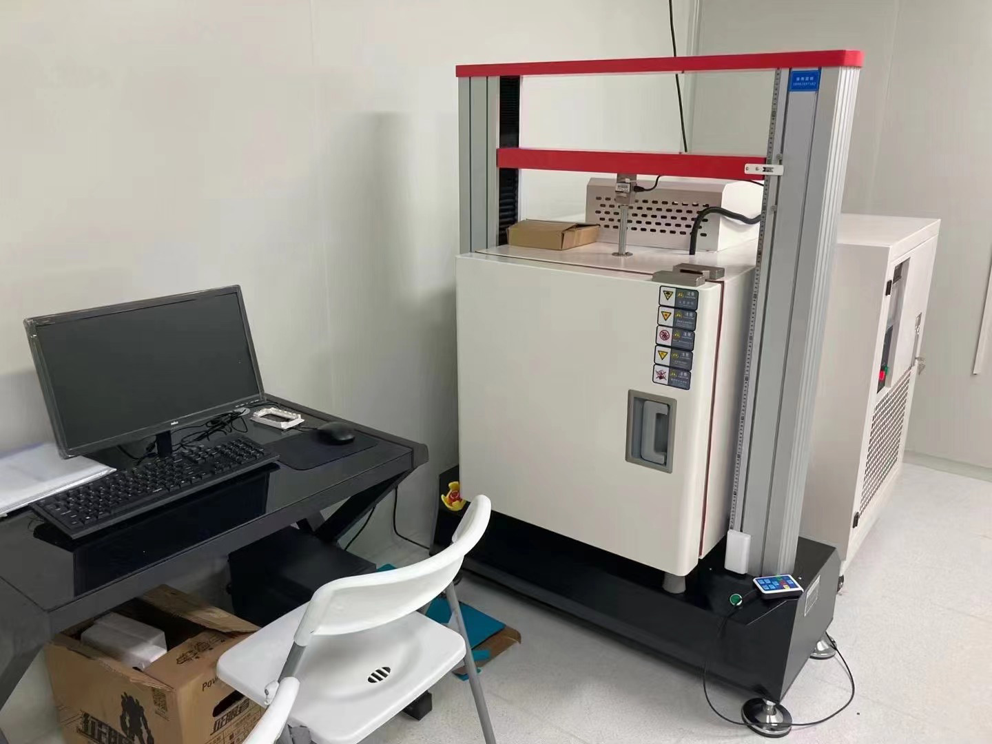 本次上海治臻采購(gòu)我司高低溫拉力試驗(yàn)機(jī),高低溫拉力機(jī)是由高低溫箱和雙柱拉力機(jī)組成的,高低溫試驗(yàn)箱常溫~300度,下面是現(xiàn)場(chǎng)培訓(xùn)照片: